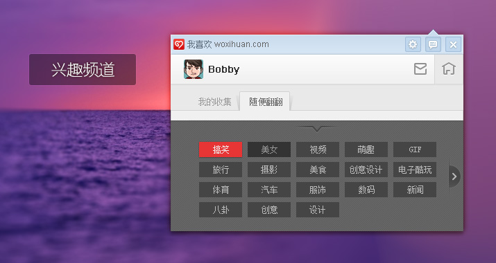兴趣频道也让这个扩展程序变的更有活力与情境,伴有一丝的意外与惊喜。让原本生硬的内容推荐变的更有情调,更易于接受。